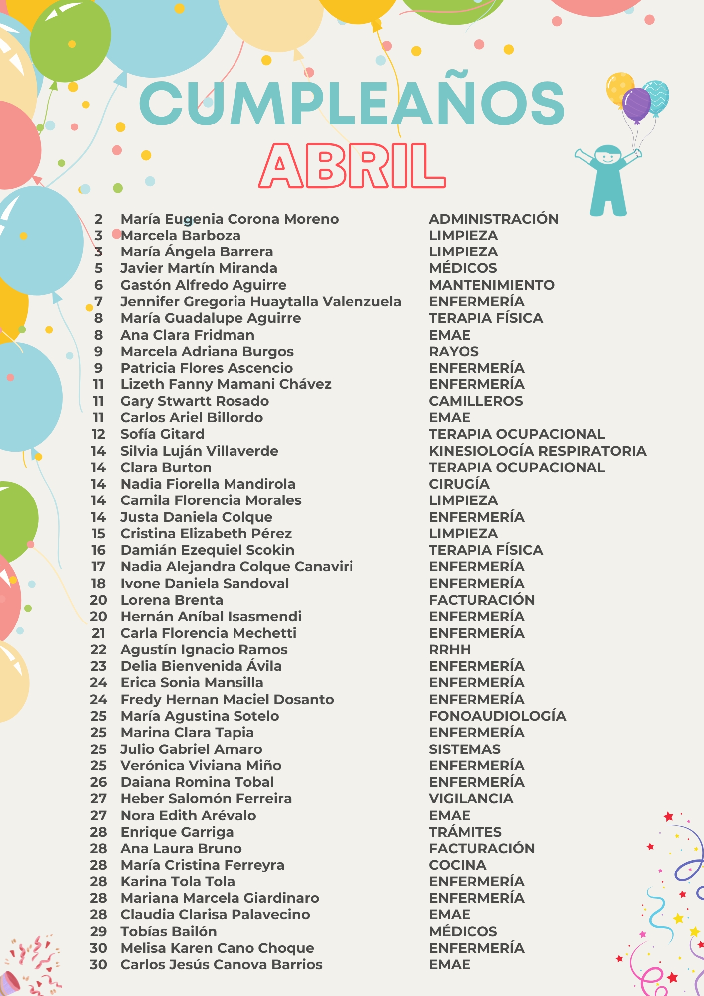 Cumpleaños – Mes Abril