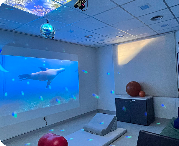 Para la rehabilitación de pacientes con dificultades cognitivas o motoras, y de aquellos que presentan alteraciones en el nivel de conciencia, este espacio está equipado con herramientas (tablets, consolas de juegos, pantallas interactivas, proyectores, softwares y aplicaciones específicas) que permiten estimular funciones de manera personalizada, generan mayor adherencia y aportan dinamismo al proceso terapéutico.